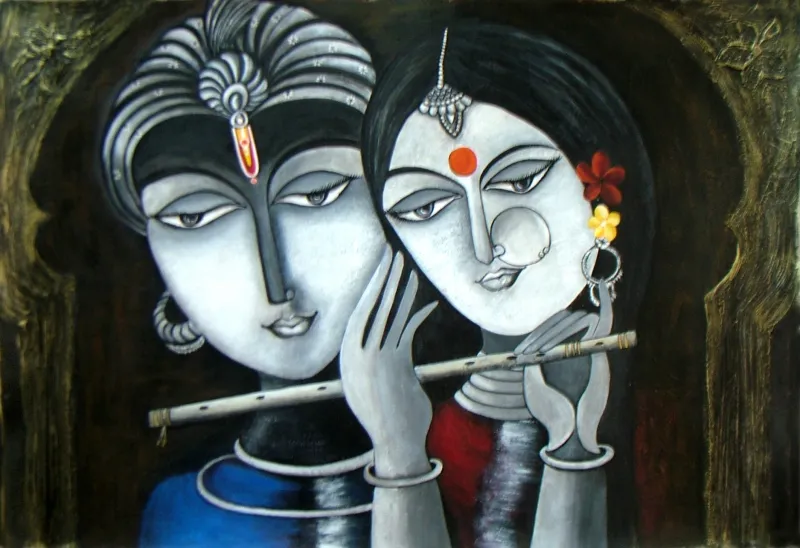 Divine Soul Mates- Radha Krishna- Original Painting
