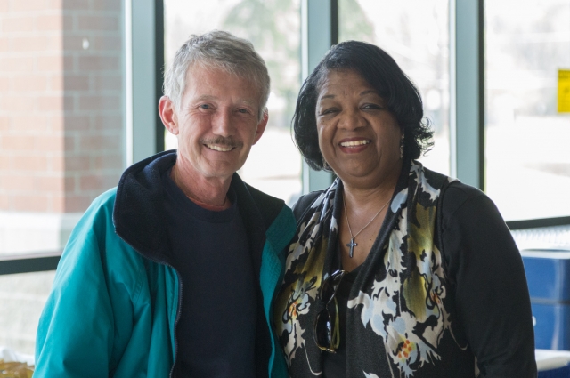 Chasing Cinderella 9th Annual Exhibit Peter Ehlinger (L) with Coordinator Sandra Turner-Barnes Intermediate, First Place Works on Paper Resident Camden County
