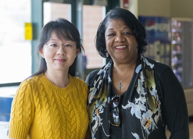 Hope 9th Annual Exhibit Yuxvan Zhen (L) with Coordinator Sandra Turner-Barnes Professional, First Place Painting Resident Camden County