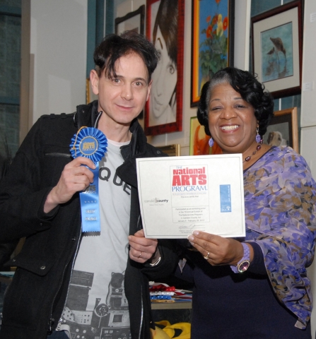 Past Lives 7th Annual Exhibit David Lunt (L) with venue coordinator Sandra Turner-Barnes Intermediate, First Place Painting Resident; Camden County Camden County