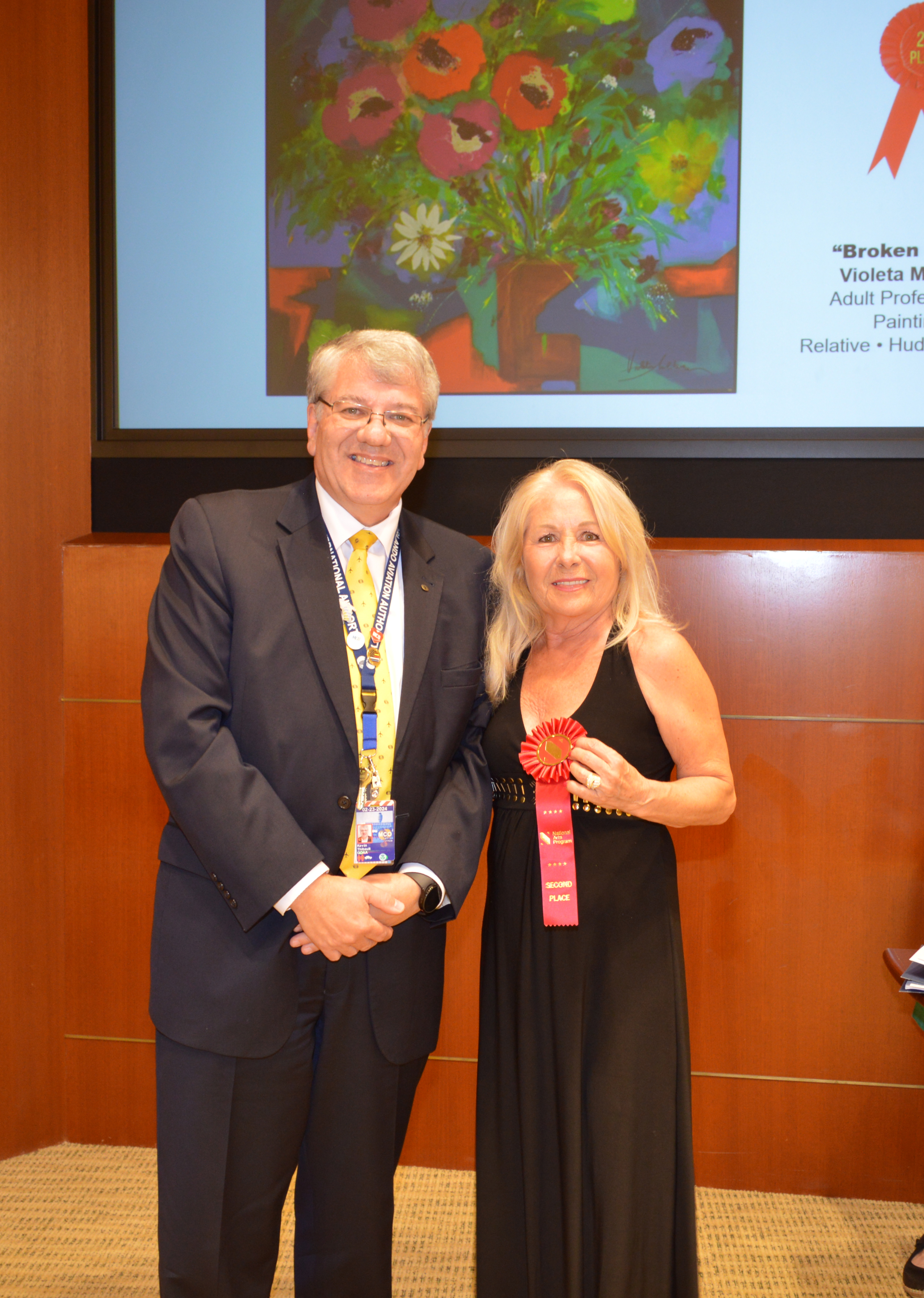 Violeta Militaru 16th Annual Exhibit Violetta Militaru Adult Professional, Second Place ; GOAA CEO Kevin Thibault pictured with Artist Greater Orlando Aviation Authority
